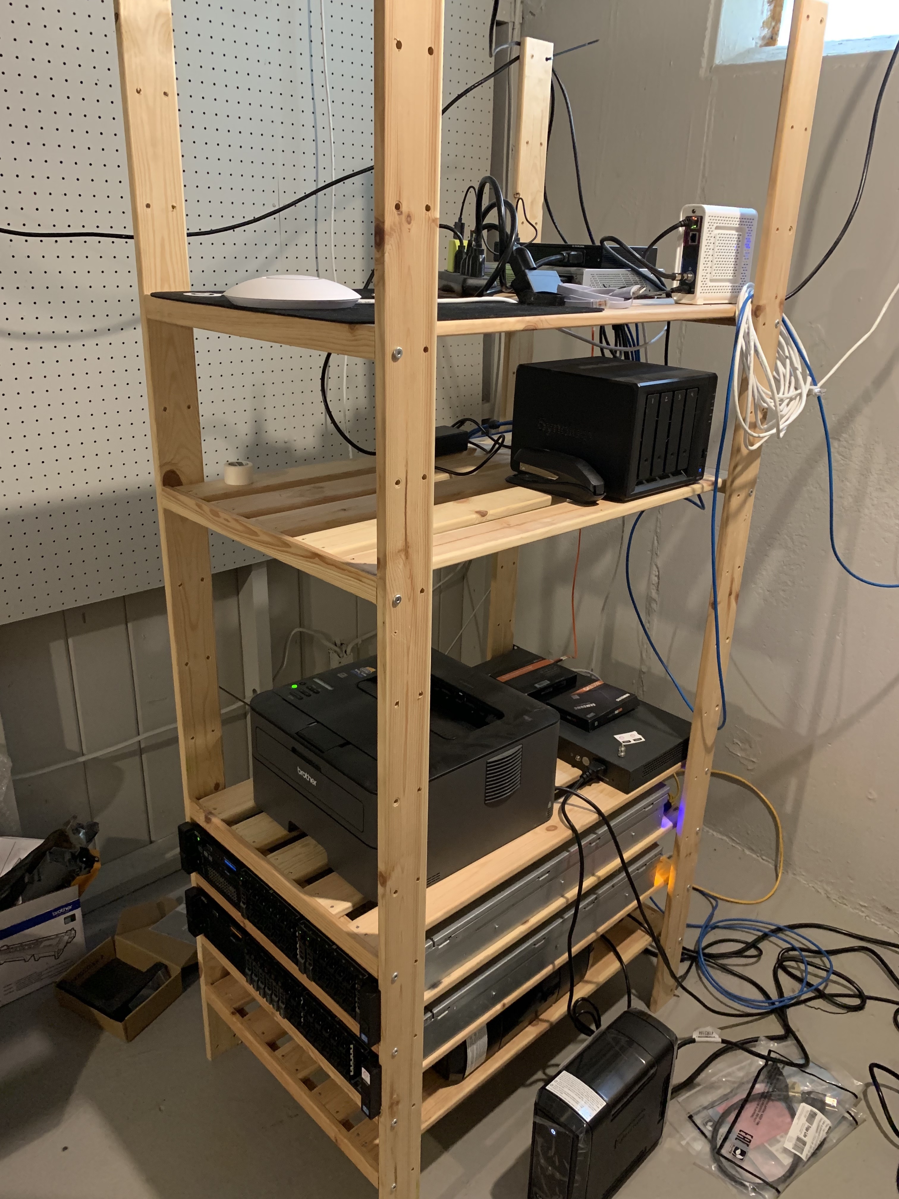 I have 2x Dell R720's and a consumer-grade i7-3770k box, some shiny ubiquity gear mixed with ugly network gear, and a Synology DS918+ for personal storage.